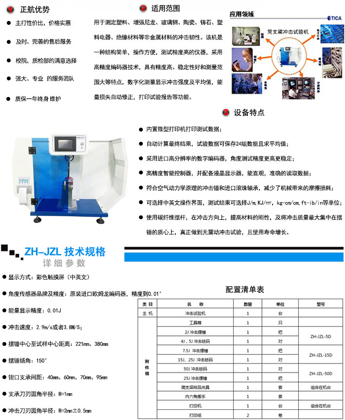 產品特點:1、高精度智能控制器,并配備液晶顯示器,能直觀,準確的讀取數據; 2、使用碳纖維擺桿,在沖擊方向上,提高材料的剛性,及將沖擊質量最大集中在擺錘的質心上,真正做到無震動沖擊試驗,且使用壽命增長; 3、采用進口高分辨率的數字編碼器,角度測試精度更高更穩定。 | |